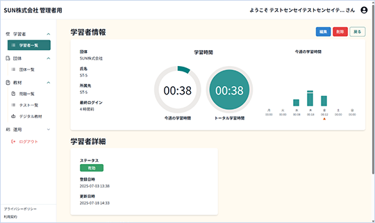 紙媒体では困難な学習の進捗管理も、専用の管理画面上でらくらく一括管理・分析。
